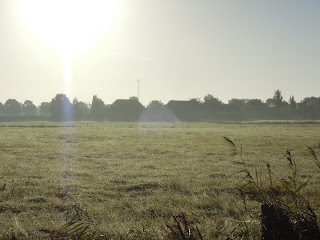Gistermorgen ging ik wandelen met Dientje. Over de weilanden hing mist en de zon scheen er doorheen. Helaas geen fototoestel meegenomen.
